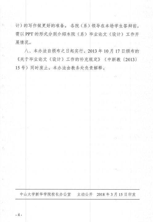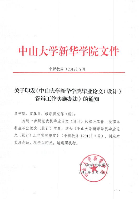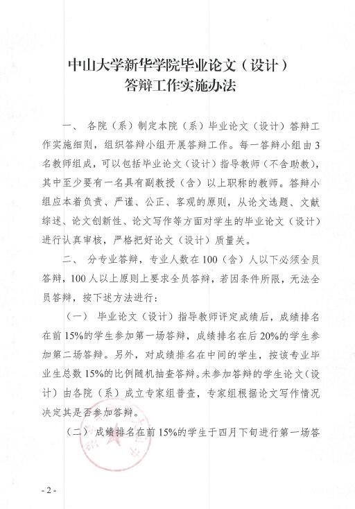 关于印发《中山大学新华学院毕业论文(设计)答辩工作实施办法》的通知