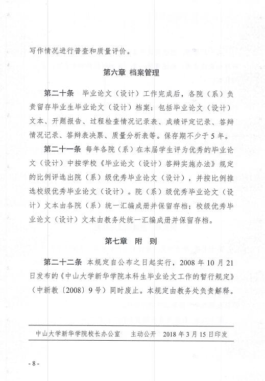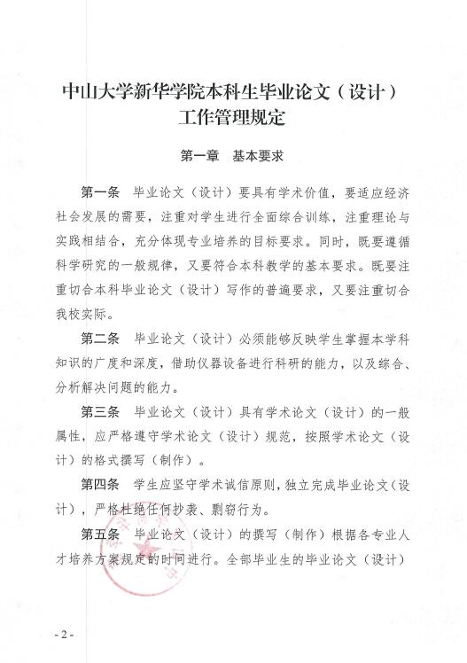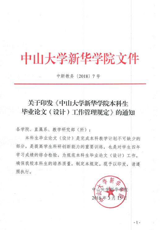 关于印发《中山大学新华学院本科生毕业论文(设计)工作管理规定》的通知