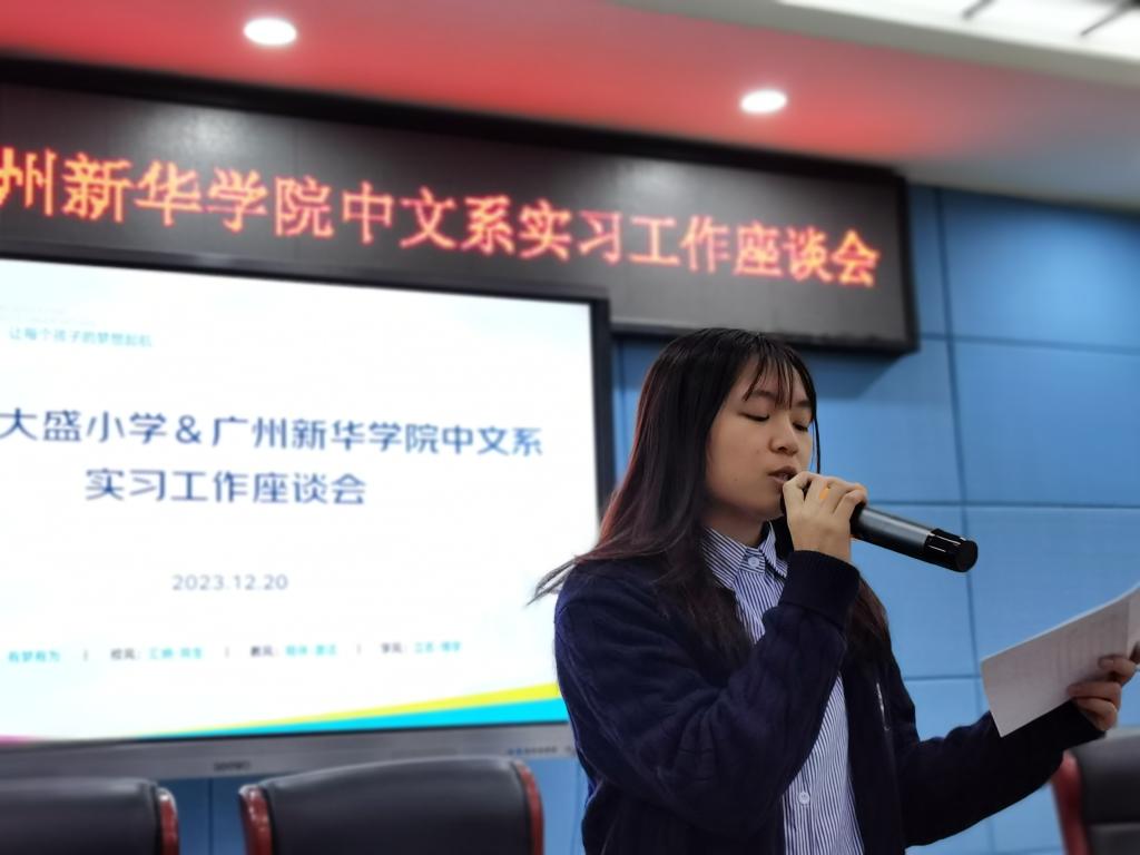 最后,大盛小学教导处黄耀辉主任谈到,盛小的校训是“有梦有为”,办学理念是“让每个孩子的梦想启航”,希望大盛小学成为新华中文学子们梦开始的地方,逐梦启航,逐梦杏坛,早日成为一名正式的人民教师,为教育事业的发展贡献青春力量。