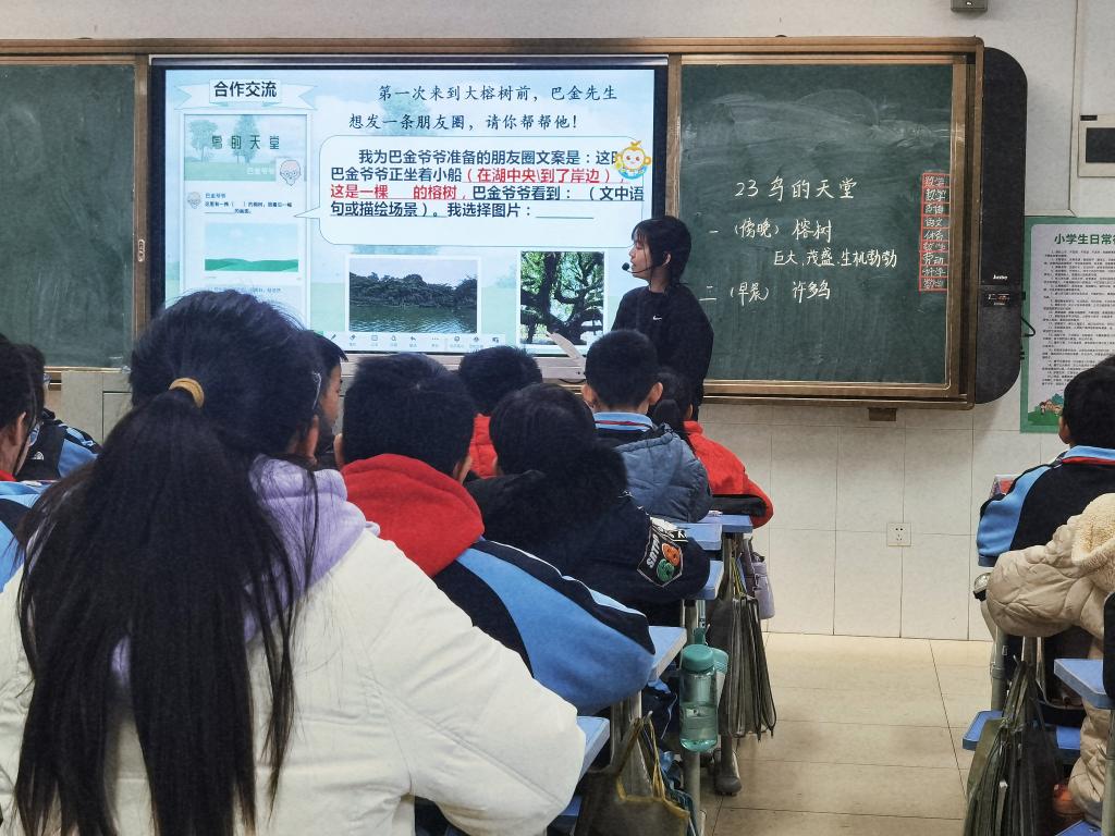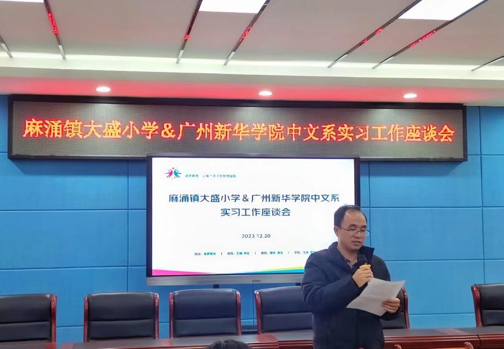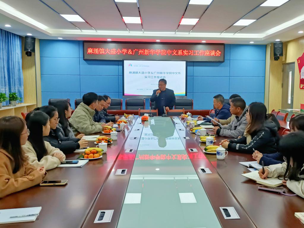 新芽初绽放,实践促成长。伴随着冬日的暖阳,我系赴东莞市麻涌镇大盛小学实习学生的教学实习生活已接近尾声。为检验实习工作效果,帮助实习老师更好地走向工作岗位,同时总结我系学子在大盛小学实习期间的教学经历与表现,促进实习教师专业发展,加强我校与大盛小学的沟通与合作,共育未来教师人才。大盛小学分别于2023年12月20日、12月22日举行了实习教师汇报课展示活动和实习工作座谈会。