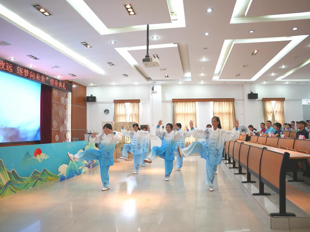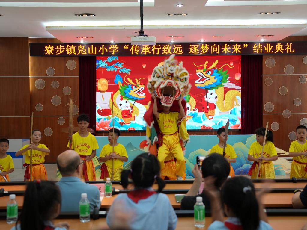 上午9时,凫山小学2024年春季学期结业典礼正式拉开帷幕,主持人万凤明老师清脆而洪亮的声音宣布典礼开始,雄壮的国歌声响彻校园。全校师生在现场和荧幕前通过精心制作的短视频,回顾了本学期丰富的学习活动和取得的优异成绩。典礼上,学校领导对师生们的辛勤付出表示了高度的赞扬并为优秀学生和班级进行颁奖。典礼期间,还有师生们带来的《传统麒麟秀》表演、《古诗四韵》吟唱以及凫山村太极队带来的《四十二式太极拳》表演等。