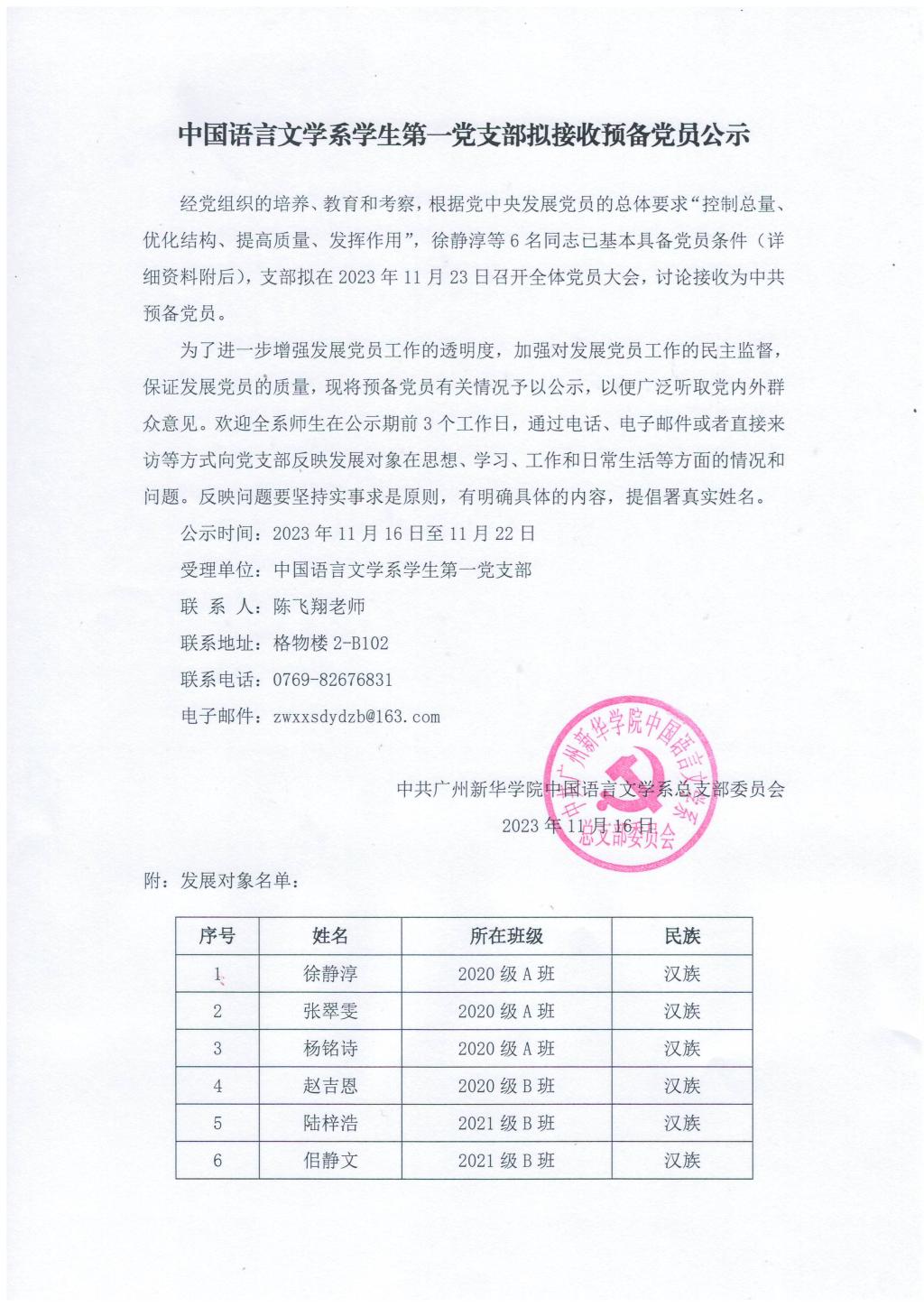 永利集团3044欢迎你学生第一党支部拟接收预备党员公示