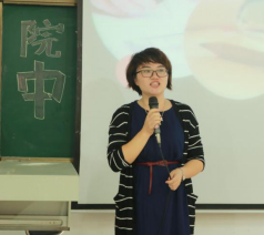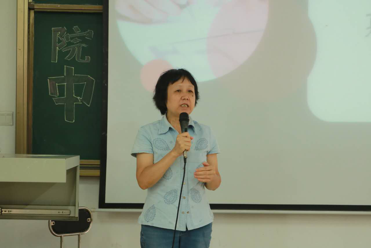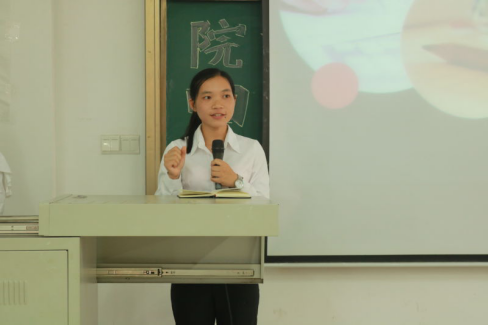 图二 刘英老师(左)和院记者站站长何晓苑(右)上台致词