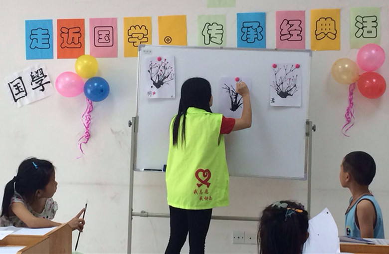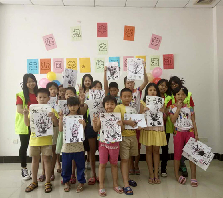 2016年5月28日上午,“走近国学,传承经典”国学公益小课堂迎来了最后一期活动——“墨香”。一笔一画,道出千言百语;字里格间,述尽千年繁华。中华五千年渊源流传的文化,透过水墨笔画,传承至今。肩负传承传统文化重任的小朋友,更应该学习、了解。此次的国学小课堂活动包括“练习毛笔字”、“趣味调色”和“吹梅花”几个环节。