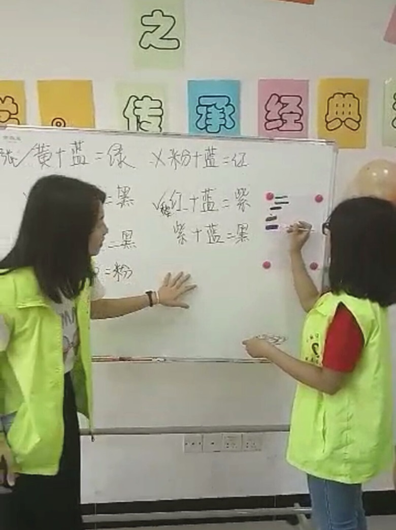 活动伊始,志愿者向小朋友们介绍国学的基本知识。小朋友被博大精深的国学所吸引,纷纷举手发言,活动氛围立马就被点燃!