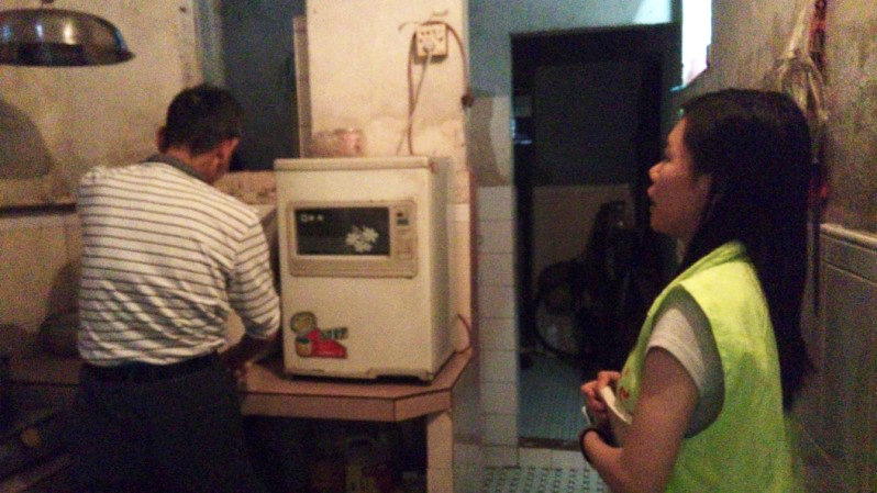 告知老人我们的来意后,屋里传来高昂的一声:“门没锁,进来吧。”推开门后,只见一位老爷爷在厨房里忙碌着什么,老奶奶则坐在里面洗衣服。老爷爷一看见我们,满是皱纹的脸上绽放出如花儿般的笑容。社工带着志愿者们亲切地向老人家们问好,我们便展开了交流,老爷爷断断续续地向我们讲诉了他的一生。