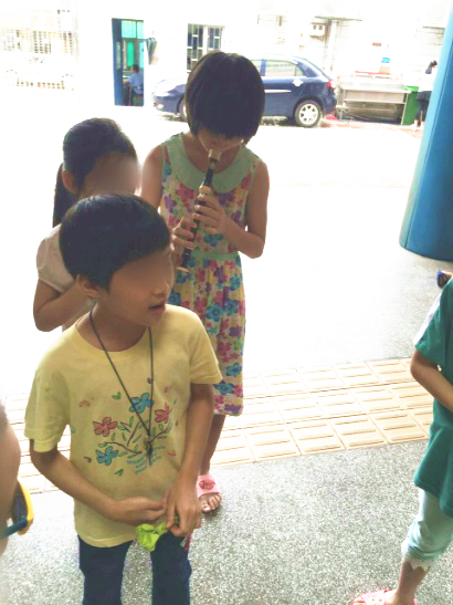 到达广州盲人学校,映入眼帘的是孩子们嬉戏的身影,拂过耳畔的是孩子们的欢声笑语。他们早早的就在小操场上玩乐,享受愉快的周六。我们热情地过去跟他们打招呼,邀请他们一起玩游戏。他们并没有因为我们的突然到访感到惊讶,而是热情地走过来跟我们聊天。