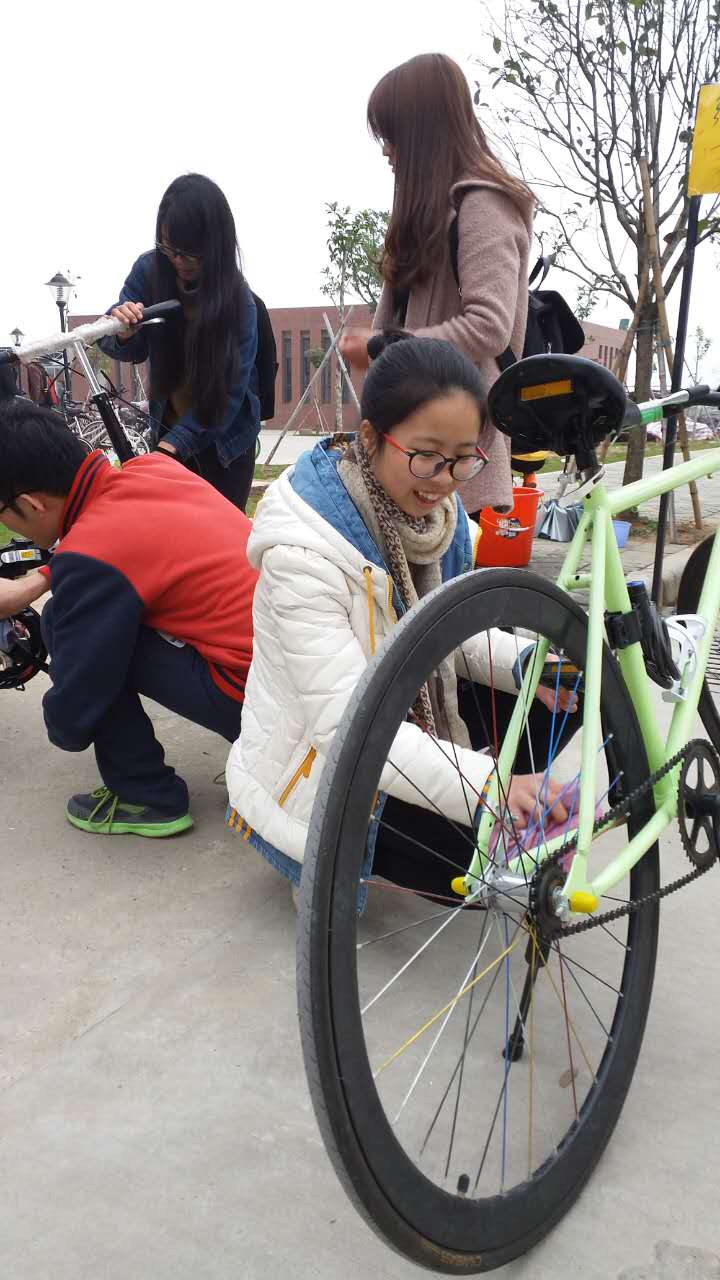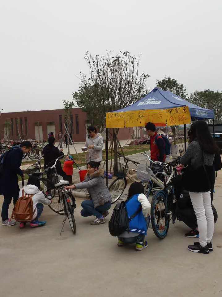 顶着料峭的春风,同学们早早地在新饭堂门前做好准备。人们都行色匆匆地赶去上课,场面暂时显得冷清。早上10点15分左右,不少人陆陆续续向新饭堂走来。第一个前来打气的人走近,志愿者们按捺不住心里的兴奋,迅速迎了上去,一个同学去拿抹布,一个同学去沾湿抹布,一个同学负责打气,还有一个同学帮忙按住气阀……共同做好第一次的“服务”。将近中午11点的时候,我们迎来了就餐的小高峰。“给你的宝马擦身打气”这个横幅吸引了不少同学的注意。随着人流量的逐渐增多,志愿者们开始主动走向那些骑着自行车的人,礼貌而热情的向他们介绍该活动,邀请他们过来体验。到了中午12点,人们已经是络绎不绝的向饭堂走过来,不少的人也骑着自行车从我们面前经过,越来越多的同学关注到我们的摊位,有的同学在一旁好奇的观望我们的活动,有的同学上前询问,有的同学推着自行车来打气……渐渐地,来到我们摊位面前的人越来越多,一辆一辆的自行车整齐地摆放着等待我们的擦洗。志愿者们信心满满地开工,有的同学拿着抹布手脚飞快的上下舞动,有的人拿着打气筒将气打得虎虎生威。每当有一个需要“保养”自行车的人靠近,同学们都会拿着抹布围了上去,引导车主在合适的场地停放自行车等待擦洗,而车主们也在一旁耐心的等待。即便后面的人越来越多,场面还是秩序井然。有个女孩推着刚刚擦洗好的充满气的自行车离去,回过头来爽朗一笑,比着大拇指对我们说“永利集团3044欢迎你好样的”。这份肯定让同学们喜得眉开眼笑,更是干劲十足。望着周围干的一脸认真,热火朝天的同学们,看着车主们充满信任和善意的眼神,我们每个人脸上都是洋溢着欢乐的颜容。