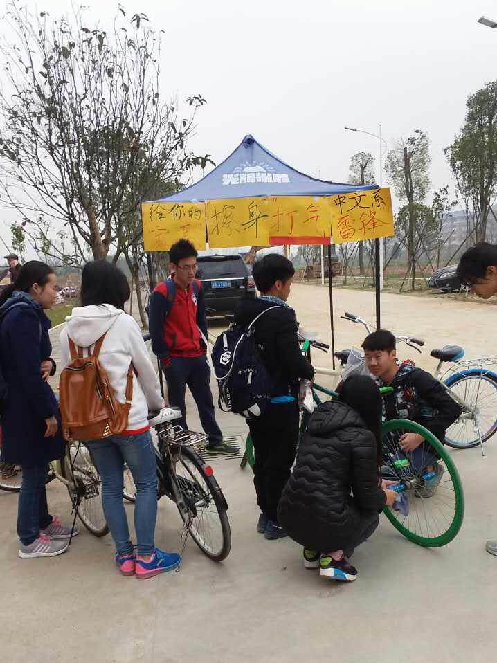 三月春风吹,繁花绽,我们又迎来了一年一度的“雷锋月”。为了更好地弘扬雷锋精神,力行雷锋作风,3月16日上午九点,永利集团3044欢迎你汉语言文学专业2015级C班的同学在新饭堂门口开展了“给你的宝马擦身打气”的雷锋月活动,为学院的同学提供自行车清洁打气的贴心服务,传承乐于助人的美德。