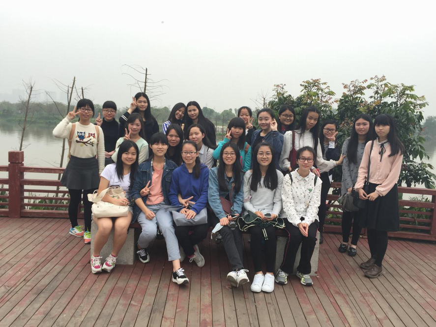 下午2:00,同学们陆陆续续来到我院东莞校区西门集中,待班团干工作人员分发完饮料后,大家有序地进入华阳湖湿地公园。一路上,同学们有说有笑,互相拍照。她们东看看正在发芽的树木,西瞧瞧热情绽放的花朵。最有趣的就要数同学们过桥时候了:有的同学钟情于争奇斗艳的鲜花,有的同学钟情于淳朴古典的建筑,有的同学钟情于碧波荡漾的秀水,有的同学钟情于与同伴相互嬉戏……这些各异的神态动作,活生生像一幅清明上河图。