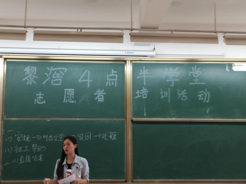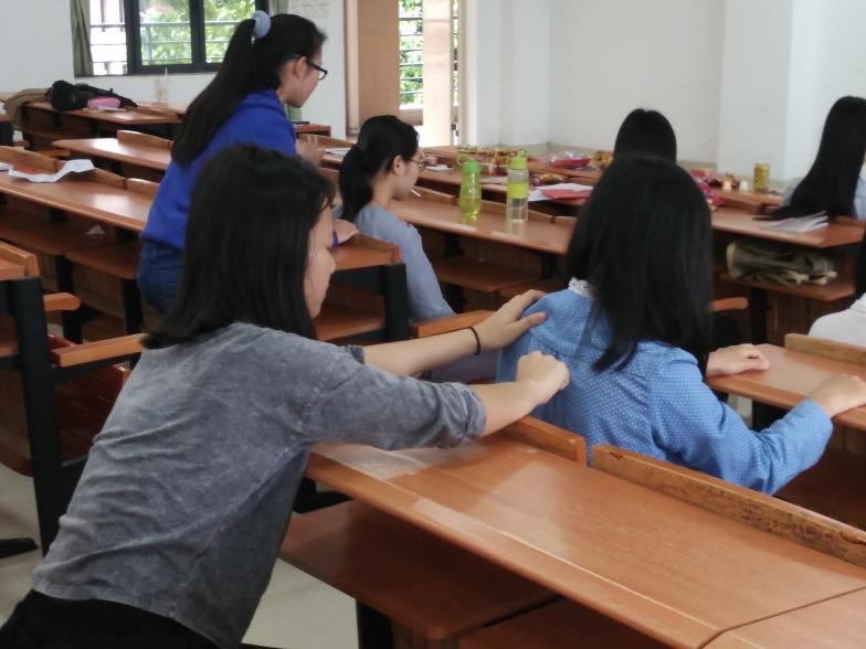 雨后教学楼里,乐雅驻黎滘社区社工开展“黎滘四点半学堂”志愿者培训活动。活动一开始,在社工的带领下,志愿者和社工们开始玩破冰游戏“摇一摇”,现场的气氛活跃起来,一下子拉近了社工和志愿者们之间的距离。