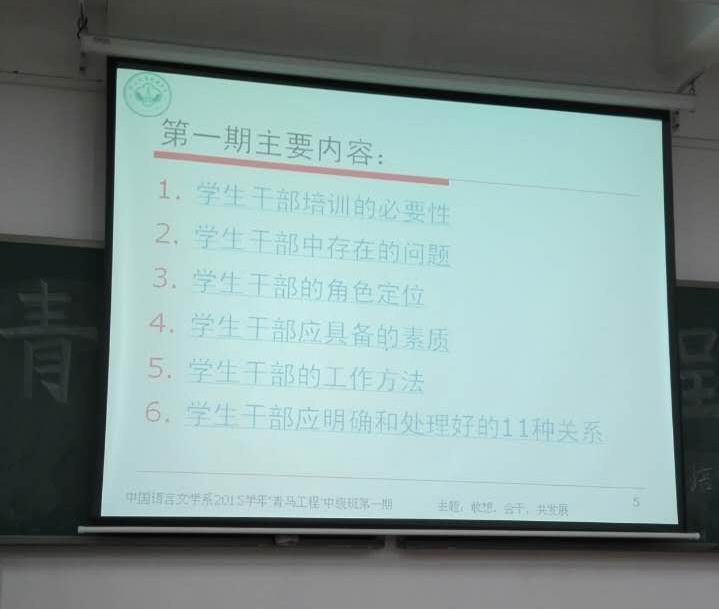 至此,中国语言文学系2015学年“青年马克思主义者培训工程”中级班第一期培训圆满落下帷幕。此次培训课不仅让学生干部对自身定位有了清晰的认识,还加强了师生之间的交流。相信每一位学生干部都受益匪浅,希望在以后的日子里,永利集团3044欢迎你团学干部们一定可以带领着同学们,共同创造永利集团3044欢迎你和自身更加美好的明天!
