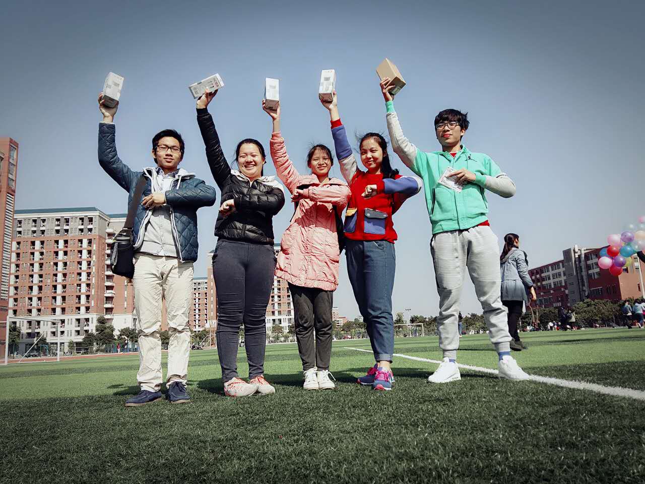 一大早,班团干部们就提前准备好道具和奖品在操场等待。八点半后,同学们陆陆续续到达,一时间,欢声笑语开始充斥整个操场。班团干部别出心裁地用“一元五角钱”的游戏让同学们在一个有趣的游戏中分好组,找到自己在接下来的游戏中的小伙伴。兴奋小伙伴们通过“拥抱的缘分”都很高兴地找到了自己的小组,并且兴致勃勃地为自己的小组取好如“金刚芭比队”、“火箭队”、“山口组”、“天地2号”等令人哭笑不得的队名。