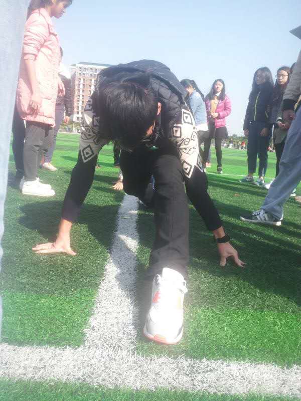 在接下来的“压轴戏”长腿劈叉中,起初同学们对该游戏都感到惊慌和好奇,但在班委的亲身示范后都被勾起了兴趣,每个同学脸上都是跃跃雀试和紧张兴奋的神情。即使很多同学都无法完成一个真正的劈叉动作,但每个同学努力将腿撑到最大并咬牙坚持到最后,而不少同学柔韧的身姿,干净利落的劈叉动作获得了同学们的连连惊叹和阵阵喝彩声。游戏之后,同学们都感到意犹未尽。在最后一个在五人六足的活动中,同学们肩并肩,手搭手,一起走完了面前这段距离不长,却情谊绵长的茵茵草坪。