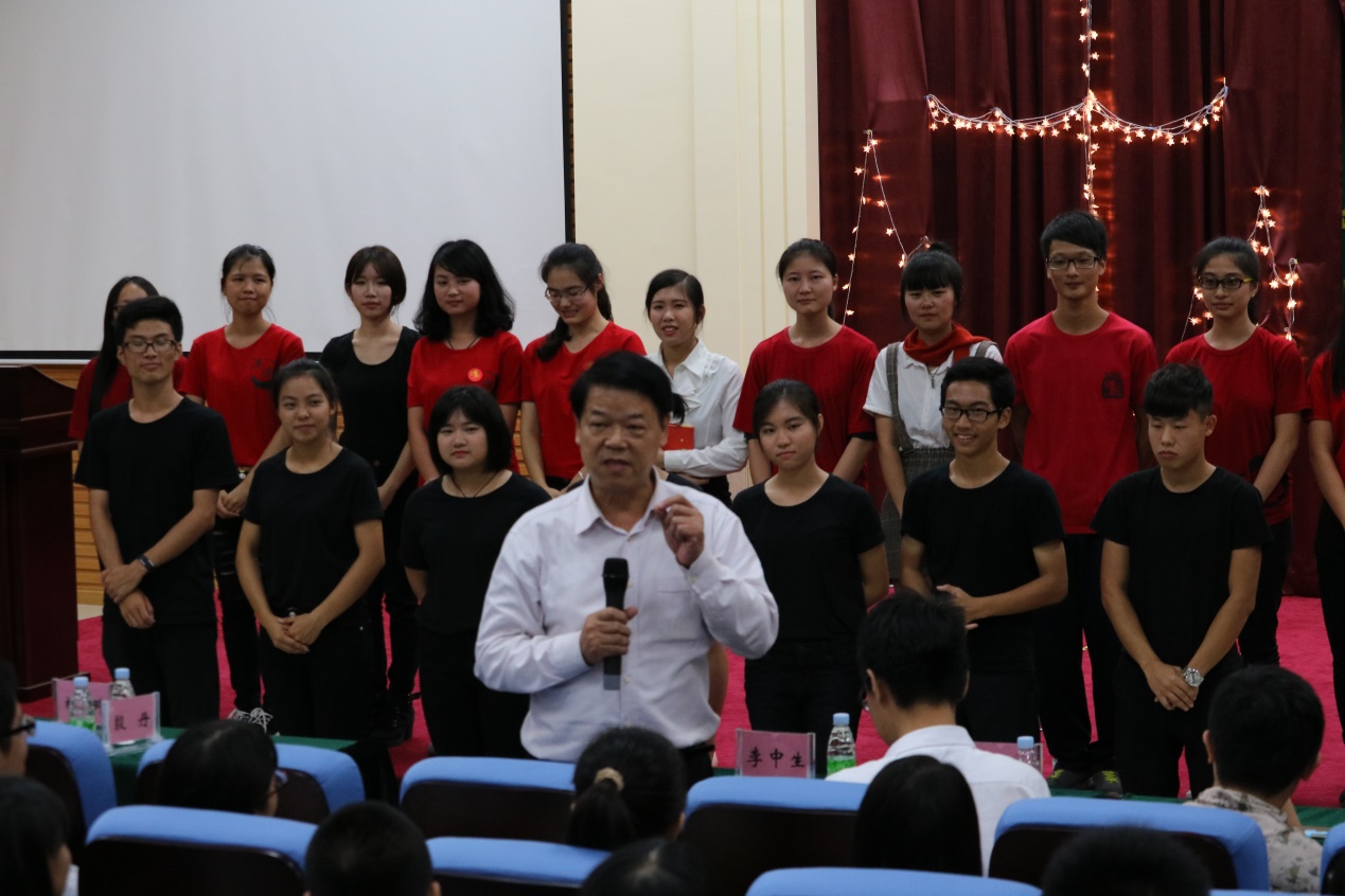11月19日19点30分,为庆祝我院十周年校庆,培养学生的艺术修养,弘扬分身剧社的魅力风采,由中山大学新华学院中国语言文学系主办,中山大学新华学院中国语言文学系分身剧社承办的2015年学院十周年庆典——分身剧社话剧专场在东莞校区定静楼①-F403讲学厅正式拉开帷幕。李中生副院长、吴桂玲老师、蒋晓晨老师以及分身剧社创始人马迅之和08级马霖圻师兄等出席了本次活动,现场座无虚席。
