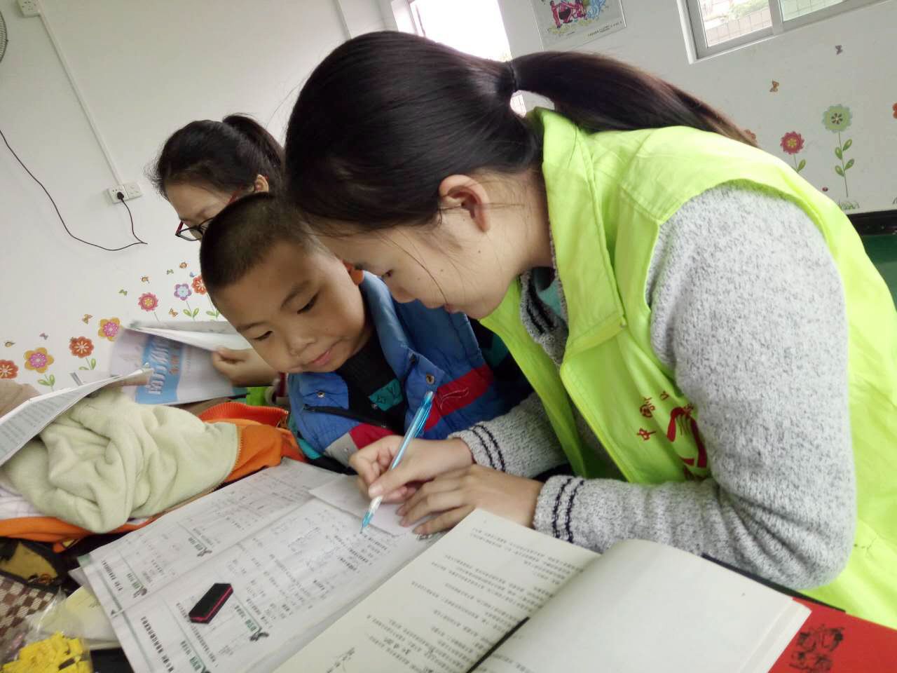 一如以往地在进行有趣的活动之前,小朋友们都会先认真地完成作业,志愿者们也在他们身边认真地为他们解决难题和检查作业,大家都好投入呢。