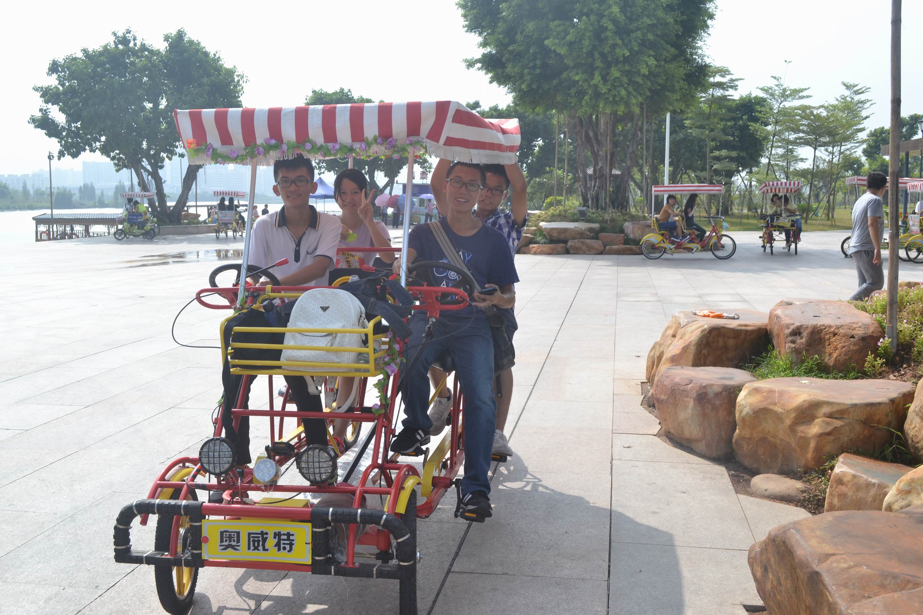秋风微凉,送来丝丝清爽。同学们二人或四人一组,默契十足地踩着租来的自行车前往此次活动的目的地——华阳湖湿地公园。