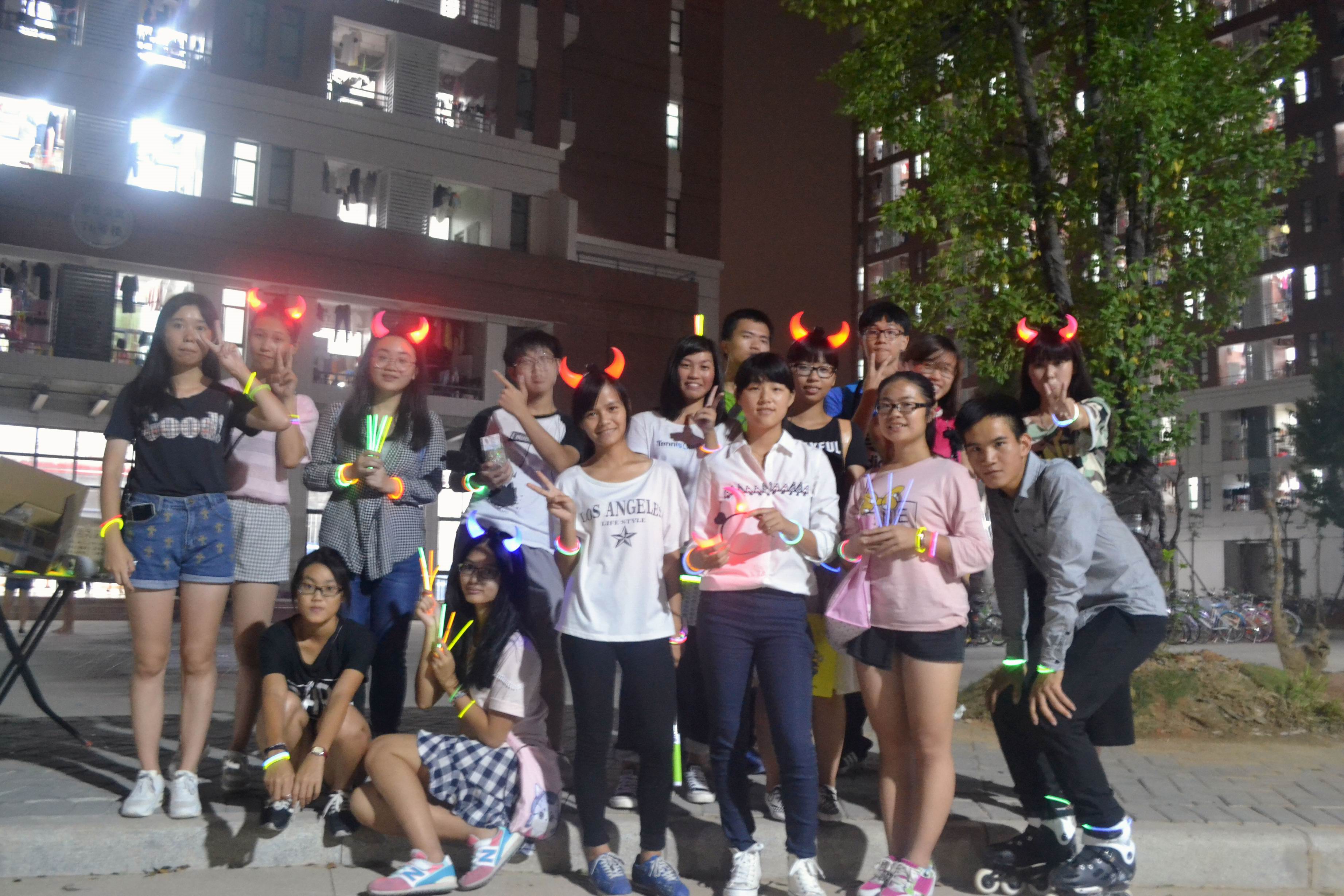 虽然夹杂着些许的凉意,但40多名同学们的热情却丝毫未减,荧光道具映衬下,每个参与者的笑容都显得格外的可爱。