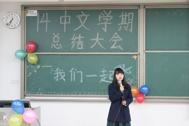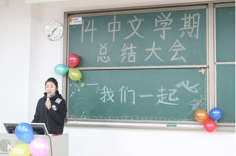 班会首先由辅导员李丹老师上台发言,她将这学期同学们参加的活动以及获得的荣誉制作成PPT进行展示,让同学们也回忆起那些激动人心的瞬间。比如陈琳同学获得“优秀非专业戏剧人奖”,在汉字听写大赛中获得的团体亚军,永利集团3044欢迎你12-14三个年级一起举办的三走活动等等。李丹老师认为,同学们除了在课堂上要认真学习外,也应该多参加课外活动,使得自己在精神上和体魄上都能得到锻炼和收获。但是,有收获,也有失去。李丹老师总结,经历了这一学期,让部分同学开始失去热情,缺少耐心,漠视规则,开始变得比较自我,在这样的关键时候,就应该有人给学生们敲一下警钟,纠正一下态度。作为学生,要学会自律,在学习上要自觉。李丹老师的一番话,不仅总结了这学期以来14级学生所存在的一些主要问题,也有利于促进同学们深思如何通过搞好班级的团结实现“我们一起飞”。