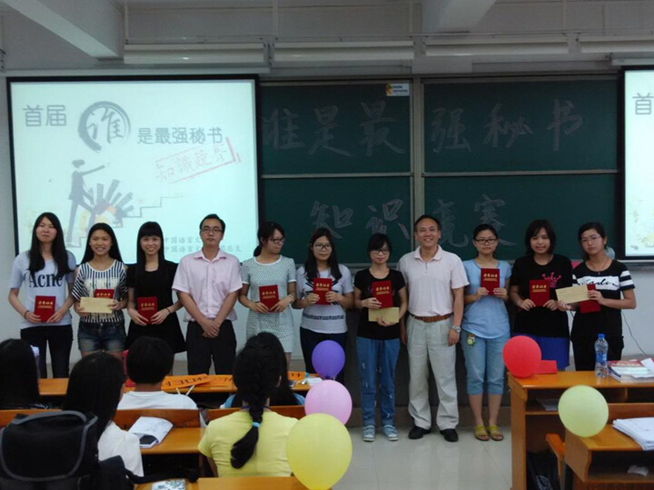5月6日下午14:30,为加强在校学生对秘书、行政助理等行政工作的专业理论和职业能力的认识,由永利集团3044欢迎你主办、永利集团3044欢迎你团总支承办的首届“谁是最强秘书”知识竞赛在东莞校区教2-A301完美落幕。永利集团3044欢迎你副主任李铭建、团总支书记杨帮琰、副书记李靖和马姬慧、何研、刘皓、李丹等老师以及32支学生参赛队伍参加了该活动。