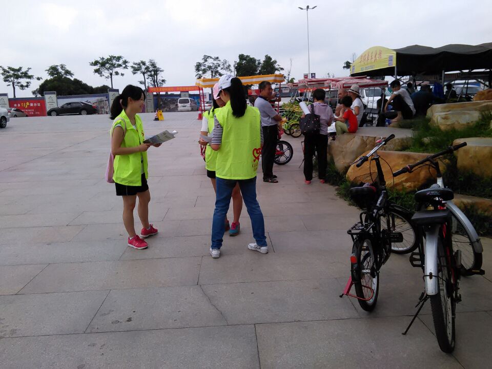 前来观光华阳湖的游客们纷纷踊跃参加问卷调查活动,共同了解、关注森林城市创建的相关事项,并领取小礼物(矿泉水与小纸巾)。现场气氛浓烈。看到宣传图上美丽的城市风光,他们对未来绿色城市建设满怀希望与信心。虽然天气闷热,但也没有阻止志愿者们的脚步。活动持续了将近一个小时,并且顺利结束。