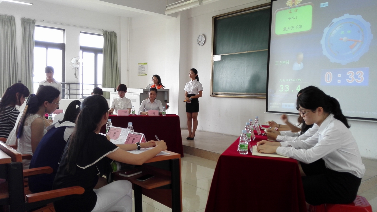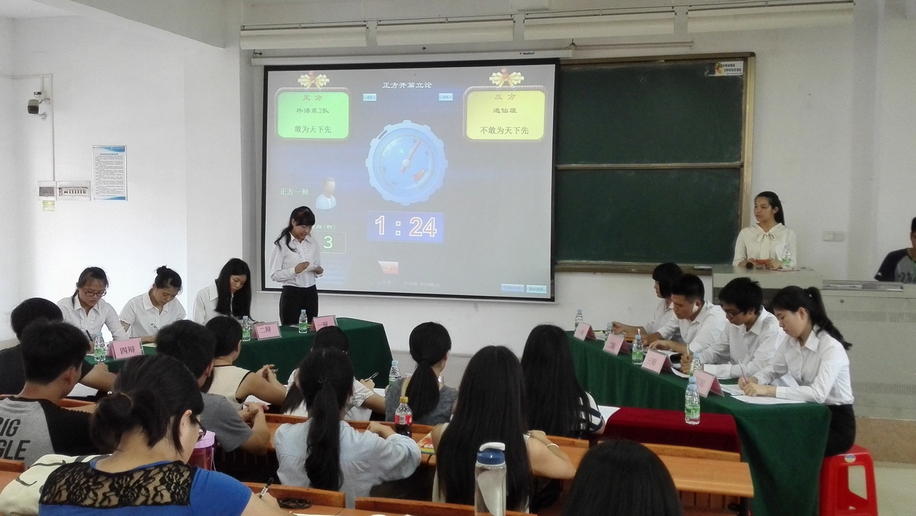 经过上周三激烈的角逐,顺利晋级决赛的20支队伍中,14支队伍于东莞校区开始了新一轮挑战,他们分别以“敢为天下先”、“不敢为天下先”为正、反方辩题分七组展开精彩的辩论。