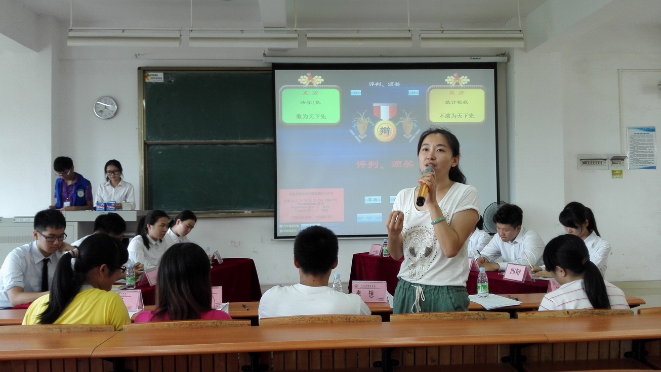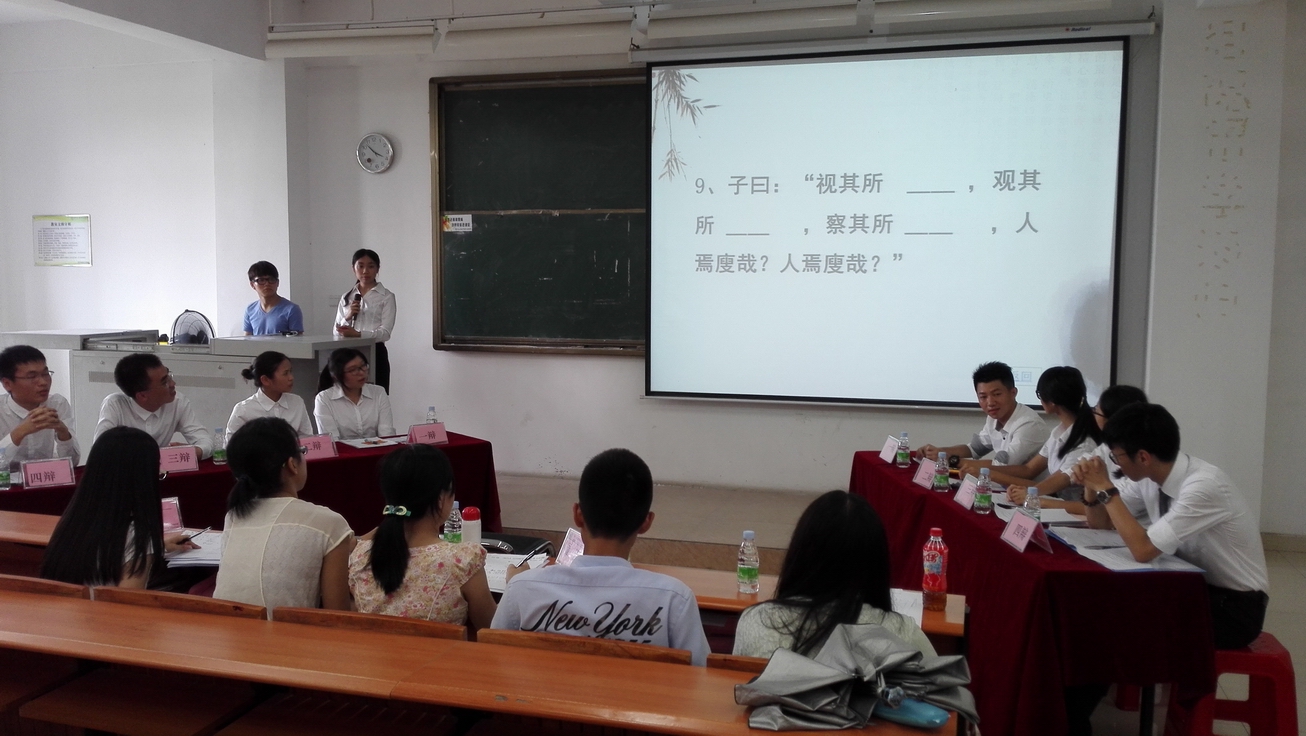 教①D402进行的小组辩论赛,是七组中最精彩的。正方代表外语系3队和反方代表逸仙班就各自辩题展开激烈的辩论,经过开篇立论、攻辩环节、自由辩论、结陈词以及该次比赛特有的知识竞答等环节的比分统计,最后逸仙班惜败外语系3队。当然比赛最重要的并非结果,而是通过辩论的过程表达出自己的想法,在唇枪舌战中感受到头脑风暴所带来的收获。双方辩手贯通古今的知识储备也让现场观众大为赞叹。