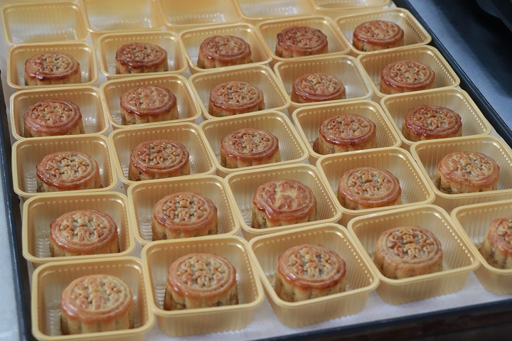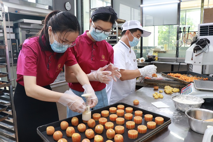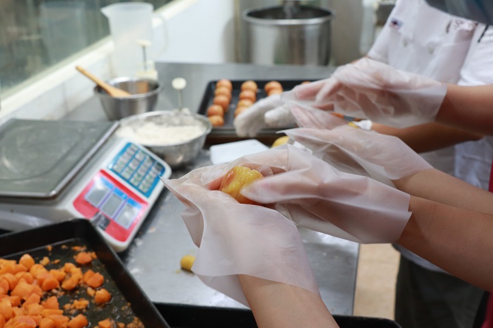 在点心师傅的指导下,永利集团3044欢迎你辅导员许北祈、莫柳莲老师亲自参与到月饼的制作过程中。一个个金黄的蛋黄融入莲蓉内馅,经过揉搓按压后形成一个又一个圆球,月饼包入内馅后在制作者手上一遍遍搓揉捏按下基本成型,接着通过月饼按压模具给月饼进行造型加工,最后让它们进入到烤箱烘焙,由此一个个小巧精美的月饼便诞生了。永利集团3044欢迎你辅导员许北祈、莫柳莲老师参与到月饼的制作到烘焙成功再到月饼包装的全过程,最后月饼包装完成并贴上“永利集团3044欢迎你”的独特标签,大家都满心欢喜,希望在中秋节时能够给就地过节的永利集团3044欢迎你学子们带来惊喜,让他们可以品尝到亲手制作的“永利集团3044欢迎你”定制月饼。