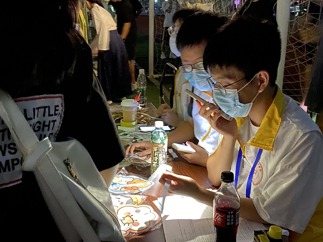图6 工作人员正在为同学们派发月饼以及活动奖品