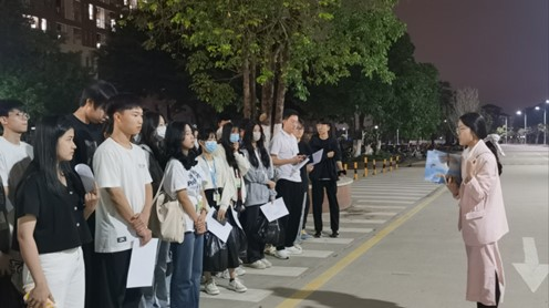 全体宣讲人员在指定地点集合接受培训,由学生会指导老师许北祈宣讲相应的活动要求与注意事项。作为工作人员,我们需明确自己的工作内容与工作标准,要铭记我们是为广大同学服务的。线下正处于诈骗与火险多发的时期,我们应积极响应系里的号召,为我系学生筑以安全的屏障。在做宣讲时,我们要注意自身的措辞与礼节,不得与同学产生口角或肢体上的冲突。对于在活动中遇到的困难,学生会指导老师许北祈建议我们放宽心态,本着一颗服务的心去做好这个宣讲活动。在活动途中若有突发情况的发生,我们要保持镇定,在保证人身安全的情况下联系小组负责人。