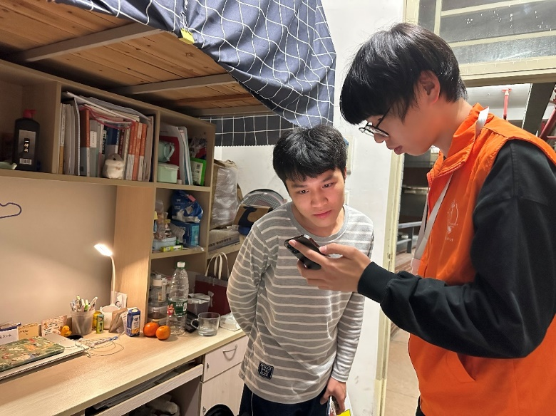 各小组有秩序地走访宿舍,开始防火反诈宣传。对于我们的敲门与问候,同学们都积极配合。本次宣讲活动还融入了知识问答的互动环节。我们进入宿舍之后,会询问同学们一些关于宿舍安全与反诈的问题,参与互动的宿舍我们都会赠予一份小礼物。