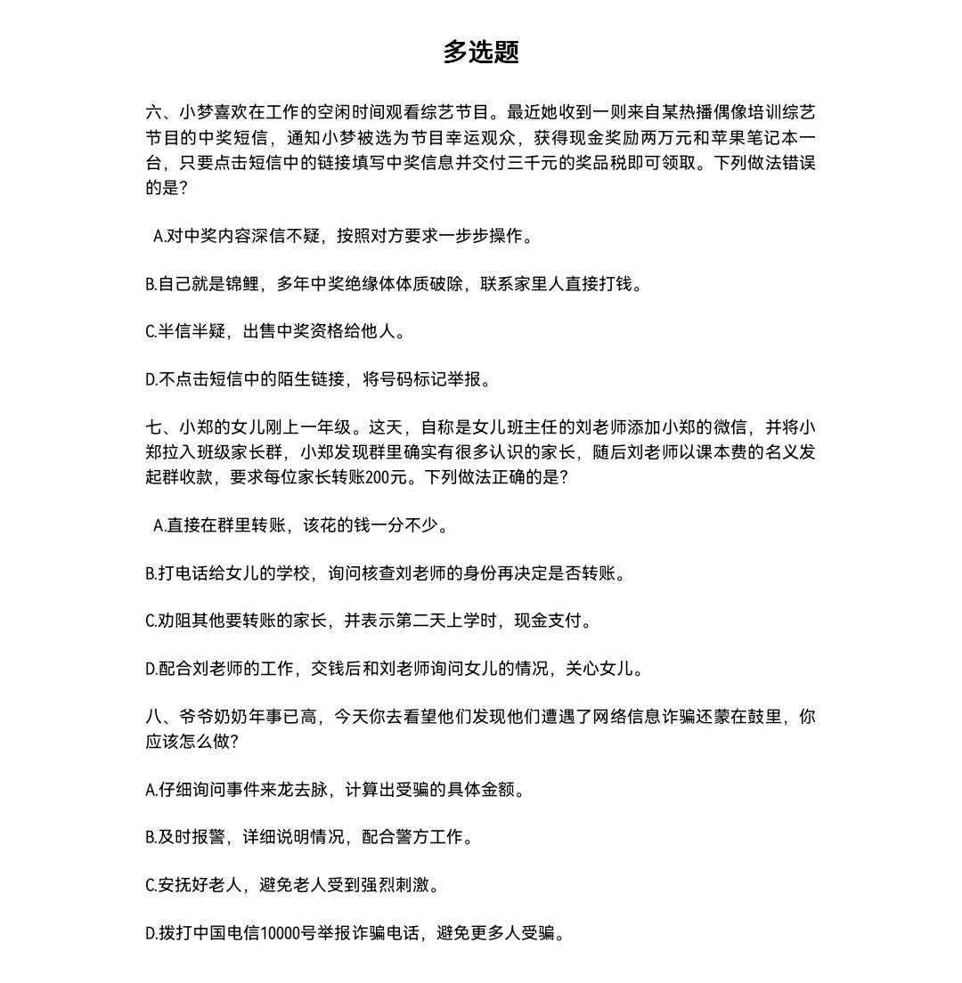 这次的安全知识分别为图片题与选择题。其中图片题需要同学们找出画面中的危险行为。以下是具体题目,同学们可以来学习一下啊!