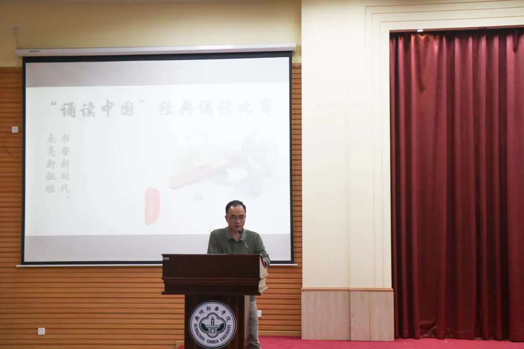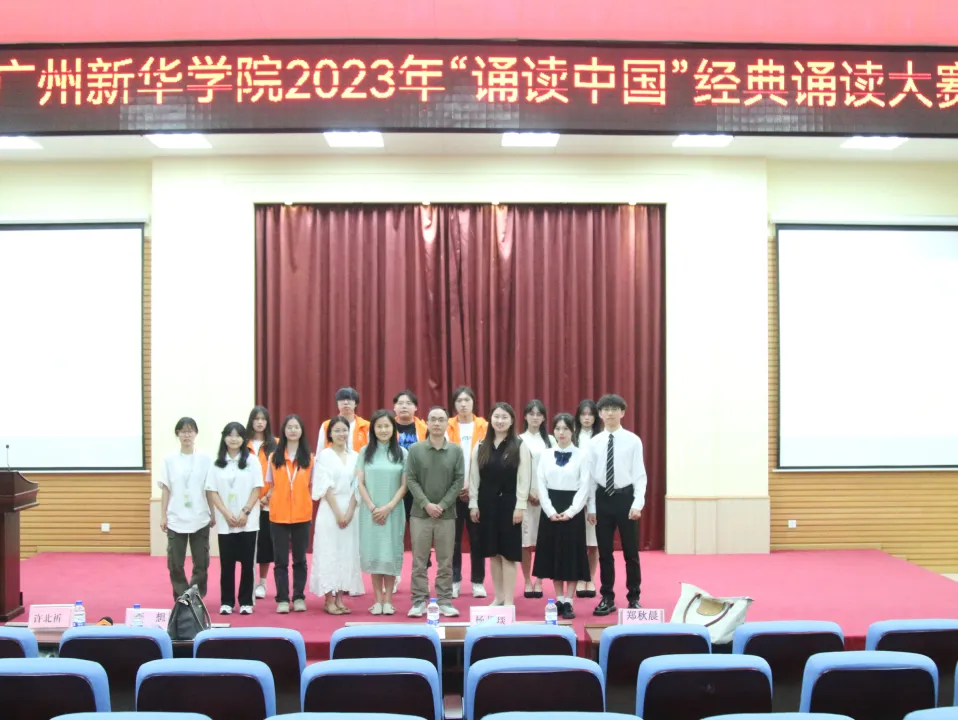 每位选手都在台上尽显风采。抑扬顿挫的语调、情感真挚的朗诵、细致巧妙的处理、亭亭玉立的少女和风度翩翩的少年,在几尺舞台上用声音为我们描绘了一幅幅美丽的画卷。在选手们的作品朗诵中,我们看见黄河和沉默的大地;看见月光下的中国;看见春天故事里花朵的绽放;看见近处的长亭和远处的古道 ;看见崛起的城市万家灯火 ;看见祖国母亲广阔的土地和曲折的海岸线。我们也听到了选手的快板声和粤语朗诵声中的穿林打叶声;听到了悲鹏举之担当;听到了“青山一到同风雨,明月何曾是两乡”;听到了宇宙无尽即青春无尽,即自我无尽……