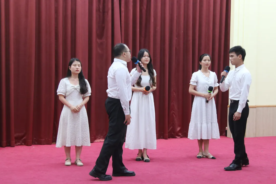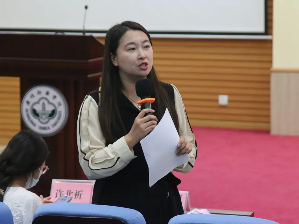 接着主持人邀请大学语文教研室主任李想老师做比赛总结。李想老师表示,在学习到了诵读技巧的同时,既感动又热血沸腾。建议选手在后续比赛中声音沉下来,学会运用气息,收紧小腹。还有理解文本,理解每一句话的意思。思考为什么作者要这么使用,需要加强气势。强调了音乐和朗诵的配合的重要性。