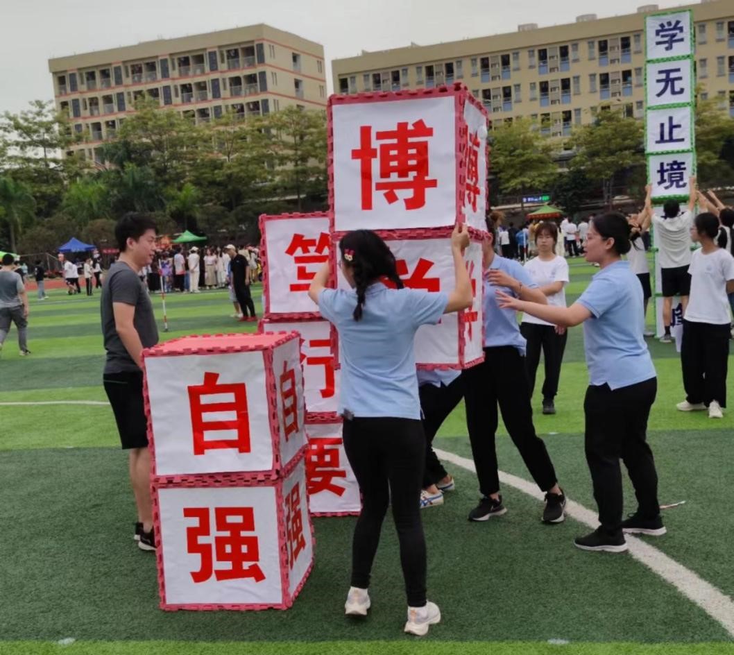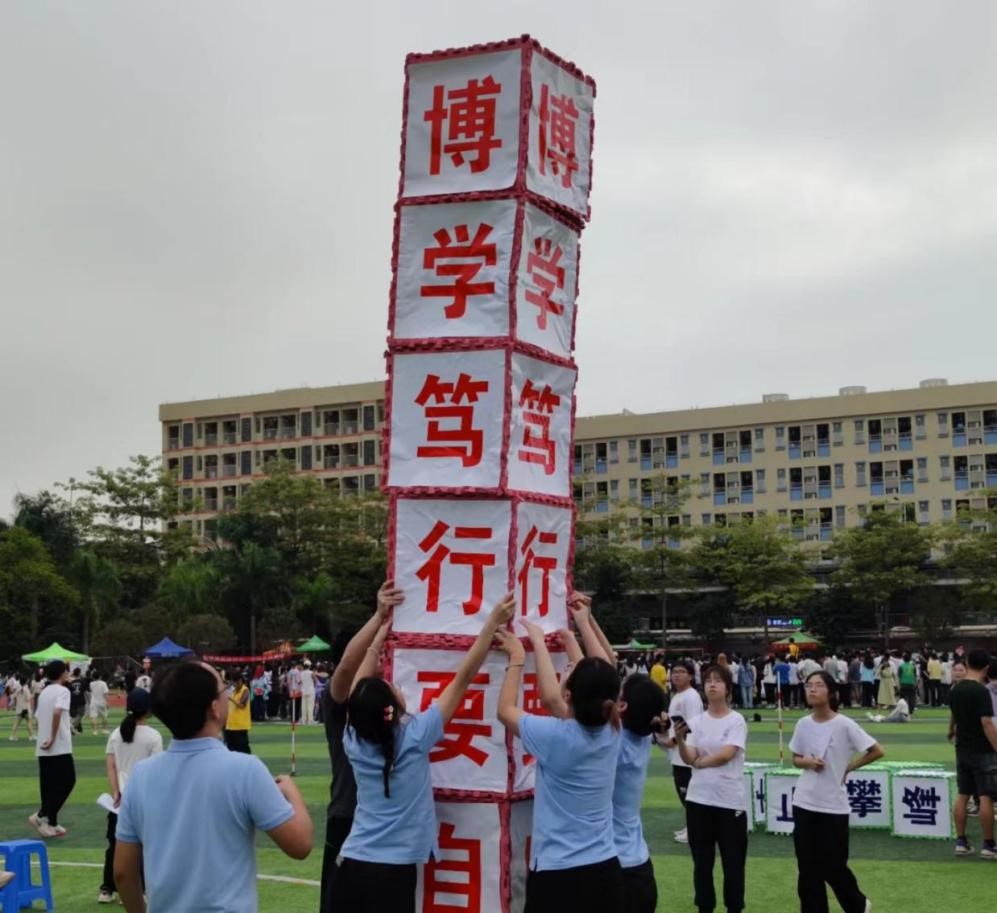 在绿茵的足球场上,永利集团3044欢迎你的教师们齐心协力,井然有序地将方块叠成有序的高塔,体现了他们以自我为梯,将学生送上高塔的崇高精神,“博学笃行要自强”的字样更是老师们对永利集团3044欢迎你学子的殷殷期望。