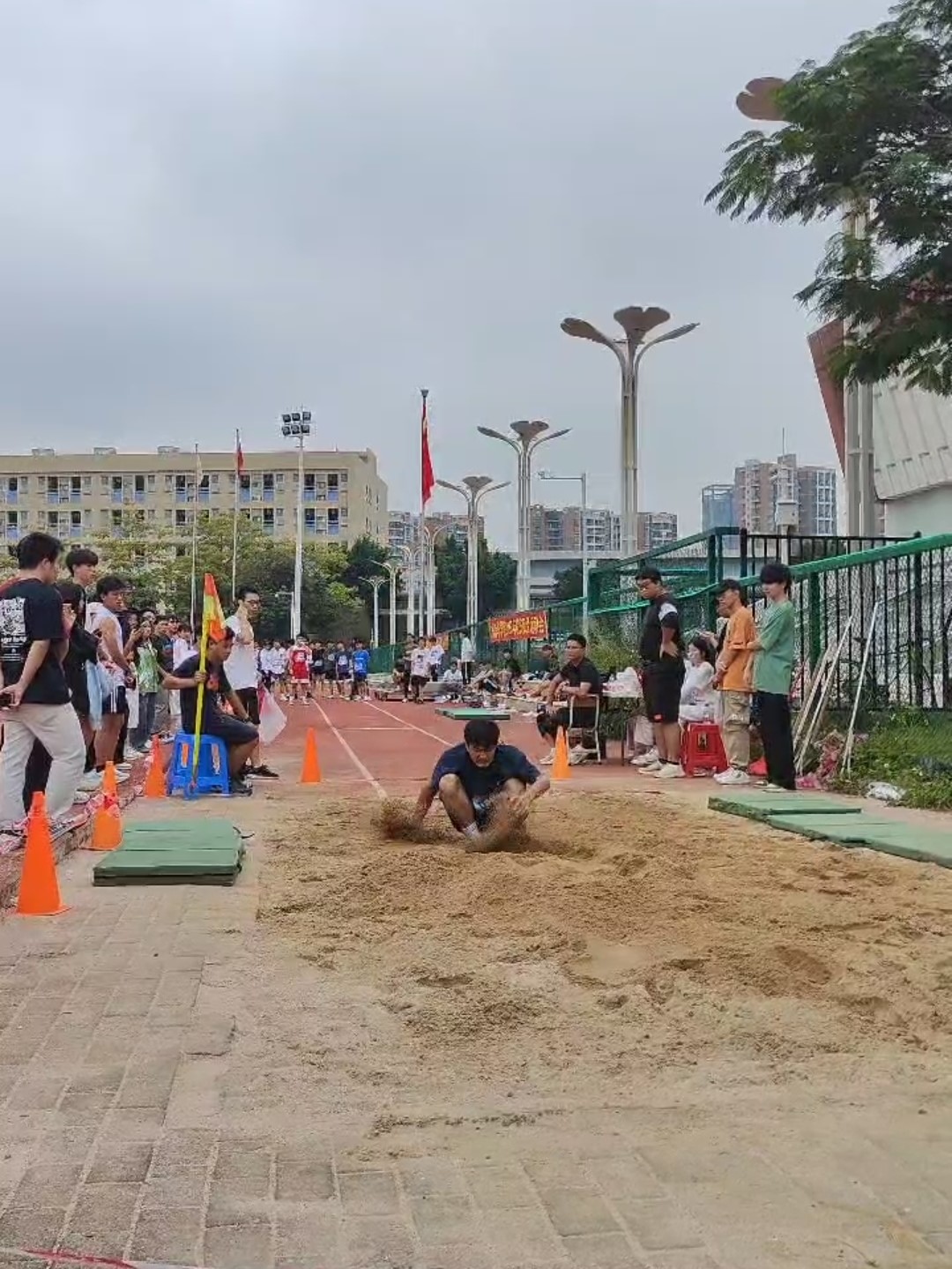迈着青春的步伐,加速奔跑,激情跳跃,飞向明天的希冀,一次次坚持,一次次腾空,细沙扬起,赢得满座喝彩。力与美,在空中定格成优美的弧线。他们超越的不仅是距离,还有自己。