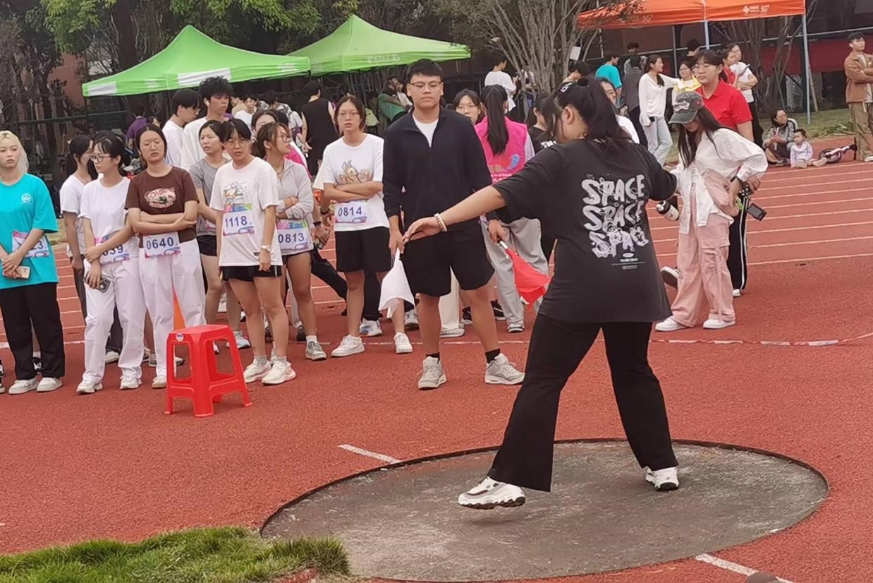 图8-9 2023级选手李王涵颖(图8)武文惠(图9)在铅球比赛
