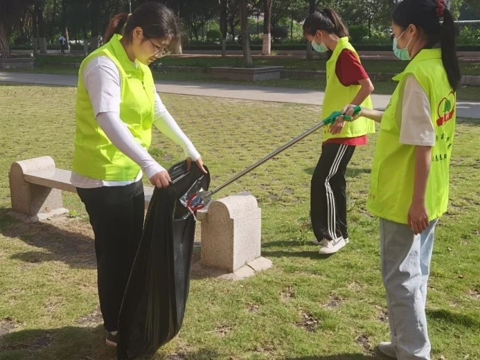 不以善小而不为,一滴水,也能映出五湖四海。美丽的校园是大家的,每个人都应该是守护者。志愿者的辛勤工作使校园焕发了新的光彩,干净的路面使得每个人的步伐都轻快了起来,整齐的自行车让交通变得井然有序,且绿化带中不再有随风飘扬的垃圾,变得绿意盎然。美丽的校园环境离不开志愿者的共同努力,更离不开每一位同学的自觉遵守和维护。在这个过程中,志愿者不仅付出了辛勤地劳动,也展现出了他们对校园的热爱和对环境的关注。他们用实际行动向新华学子传递了一个重要的信息:每个人都可以为美化校园作出贡献,每个人都可以为环保事业尽一份力。