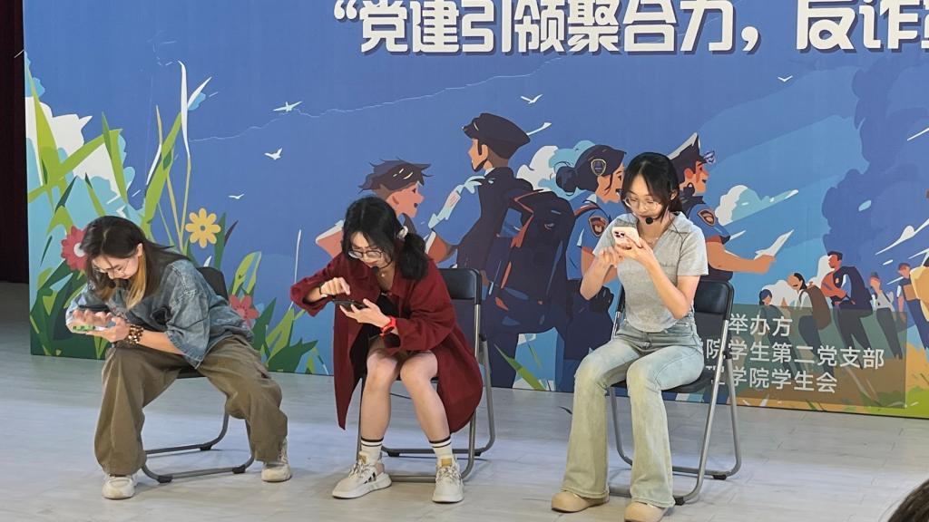 基于此背景,剧社的成员们精心编排了相关剧本,以离我们生活最接近的故事为基础,讲述了班会上三个女生分享了因音乐节票难抢,寻找非官方渠道购票最后被骗的经历。苗班长借此机会向全班同学普及反诈骗知识。班会最后,通过苗班长与家人的电话发现他的家人刚刚被网络诈骗,可见反诈骗之路,任重而道远。生动的演技和充实的剧本,让观众赞不绝口。通过情景剧的方式,形象生动地展现各种各样的骗局,为大家普法反诈。作为一名大学生,我们不仅要在生活中增强防范意识,深刻认识到反诈的重要性,不相信来自非官方途径的消息,还应运用国家反诈骗法来维护自己的利益。
