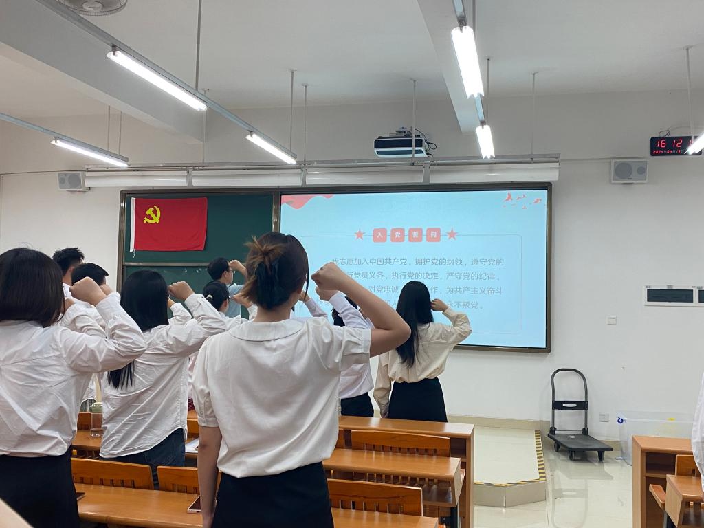 活动伊始,在党总支副书记杨帮琰的领誓下,学生第一党支部、学生第二党支部的7名新党员进行了入党宣誓,其他党员同步重温了入党誓词。党员们高举右手,声音洪亮,誓言铿锵有力,彰显了党员们对党的忠诚和对人民的担当。