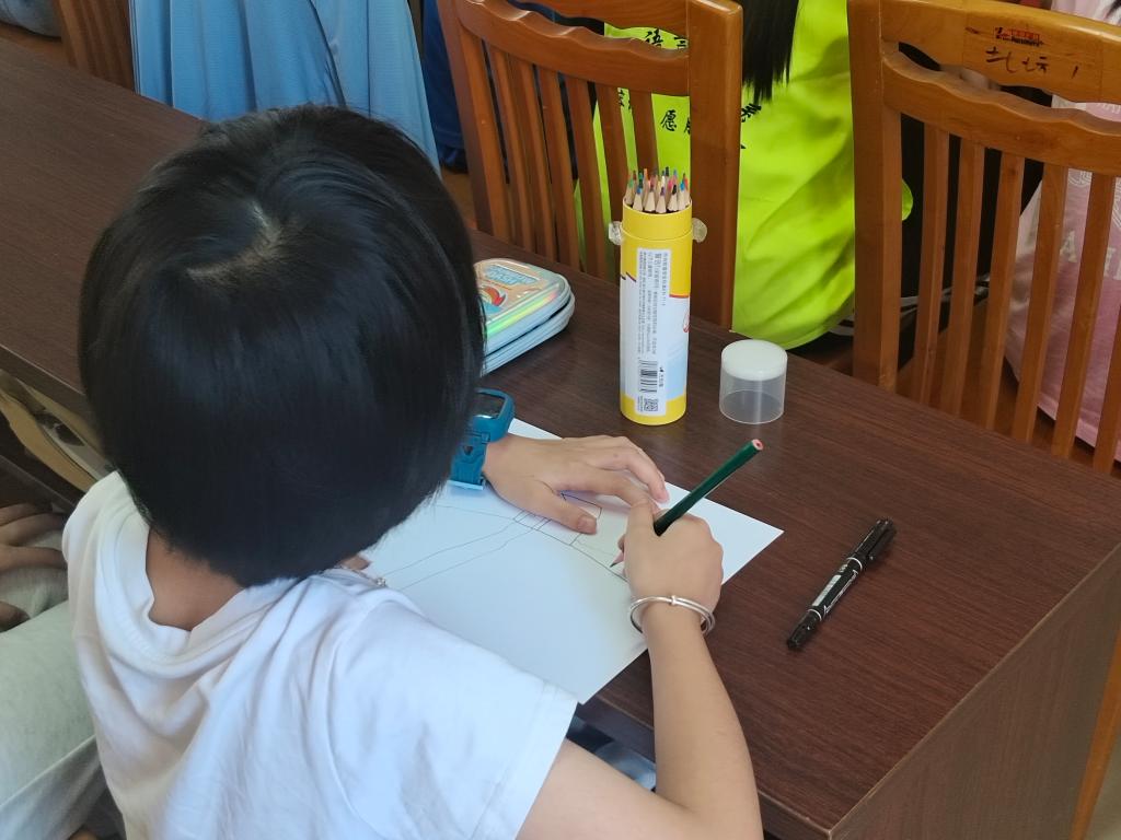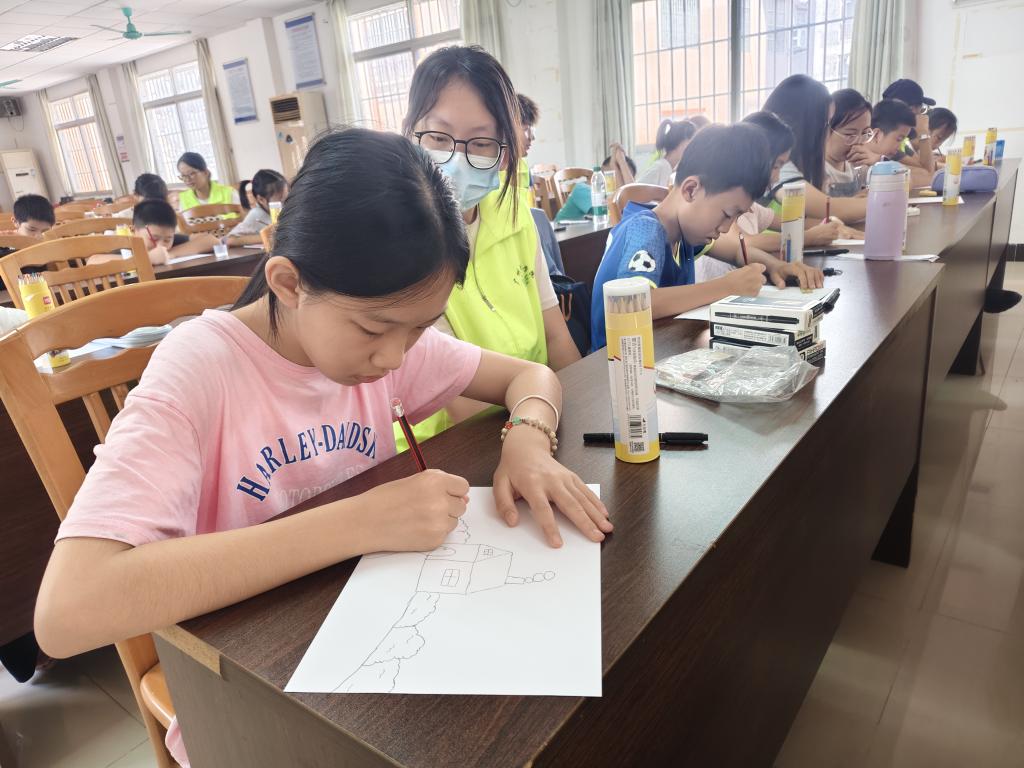 朋友们迫不及待地投入绘画创作,在画纸上勾勒自己心中的美丽庭院。志愿者穿梭其中,不时给予指导和鼓励,耐心解答小朋友们的问题,帮助他们解决绘画中遇到的困难。在创作过程中,小朋友们充分发挥想象力和创造力,用五彩斑斓的画笔描绘出一个个理想中的美丽庭院。在这些作品中,有盛开的花朵和飞舞的蝴蝶,有清澈的水池和欢快的鱼儿,有古老的树木和可爱的小鸟……