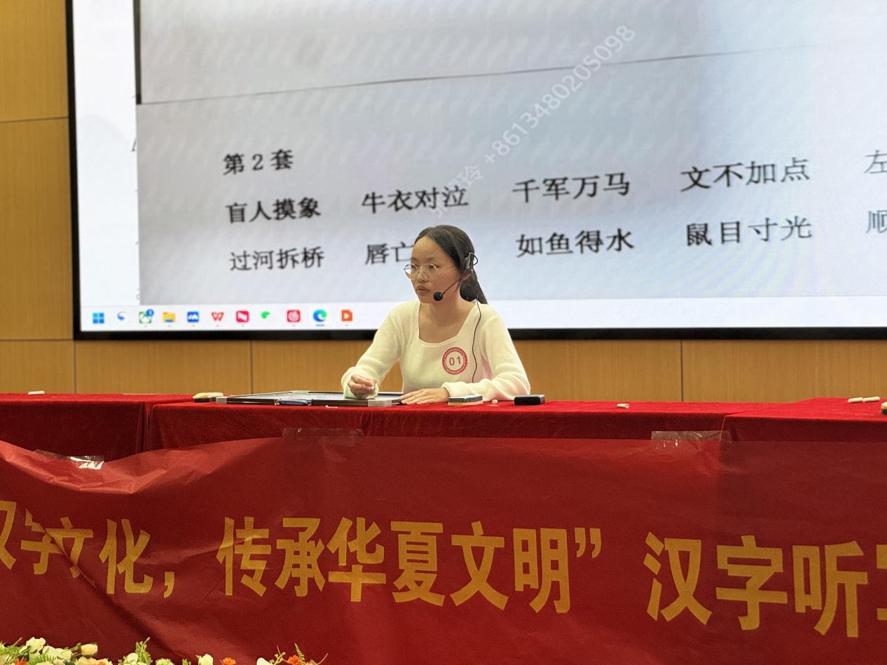 在比赛正式开始之前,杨帮琰副书记作开场致辞。他指出,语言文字不仅是交流情感的工具,更是文化传承的载体。中华民族的形成和发展离不开汉文字的维系,我们用汉字书写着中华文明千年的历史。杨老师希望各位同学在比赛中,通过汉字听写的各个环节,进一步走进汉字,感受汉字独特魅力。