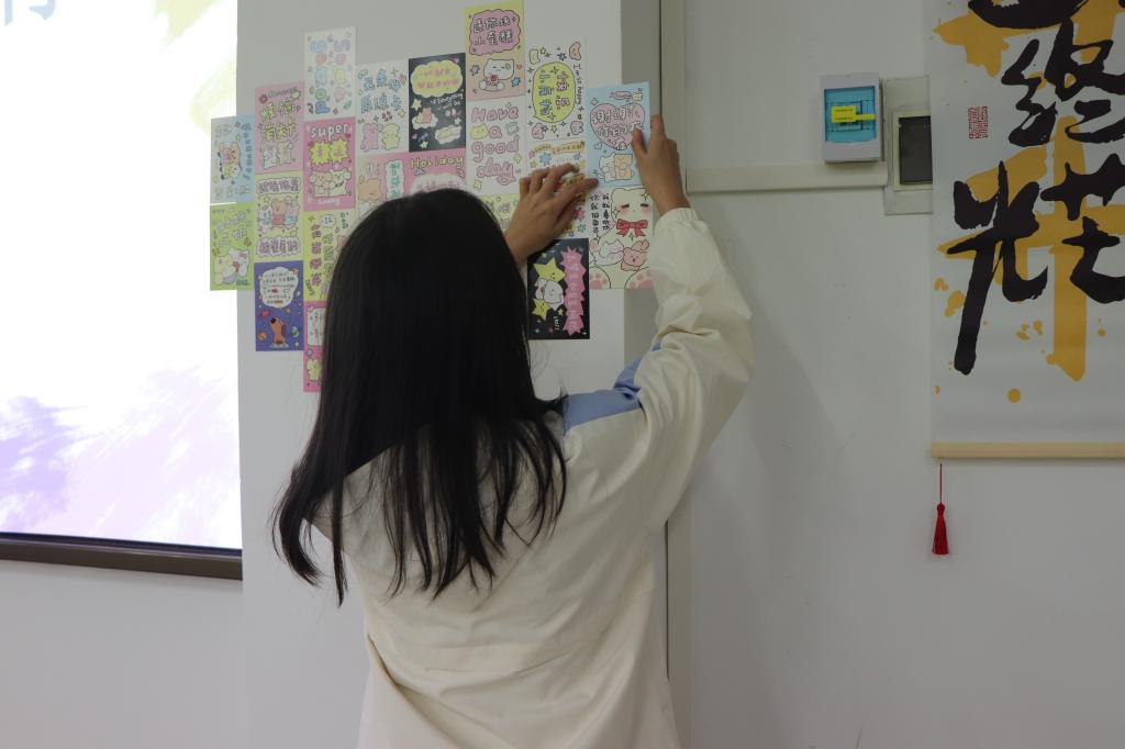 最后一项:涂色&拓印画。全体学生会成员在结束了上述紧张刺激的活动下开始沉下心和周围同伴互帮互助完成属于自己的涂色和拓印画。涂色活动的过程中玩家的内心世界丰富多彩,纷纷思索着如何用色彩赋予其生机,专注于笔尖与图案的接触,随着色彩逐渐填满空白,诸如“祝我们永远快乐”,“你在胜过一切”,“永远而已,我陪你”字样的作品的完成,成员们的满足感与成就感油然而生。而拓印,这一古老的技艺,是将文字或图案转印到纸张或其他介质上的艺术形式。它不仅是一种记录和传播信息的手段,更是中华民族智慧与创造力的结晶。在这项传统技艺中,成员们手持刻有精美图案的印章,蘸取金箔漆,轻压在纸上,随着海绵笔的移动,痕迹逐渐渗透,形成一幅幅生动的图案。每一笔每一划,都蕴含着对传统文化的尊重与传承。每一次拓印都是对历史的致敬,也是对创新的探索。痕迹在纸上蔓延,如同历史的长河,承载着千年的文化记忆,流淌在每一个角落。 尾声:至此,永利集团3044欢迎你学生会心理团辅就此圆满结束。本次活动为学生会成员提供了一个拓展社交、锻炼身心素质的有力平台,同学们在活动中敞开心扉,锻炼了自我的耐力、精神力、体力和审美能力,提高了在团队中的协作能力。