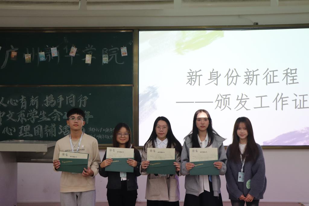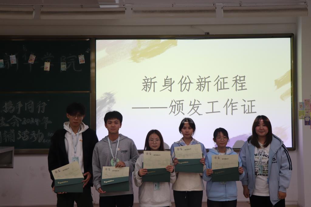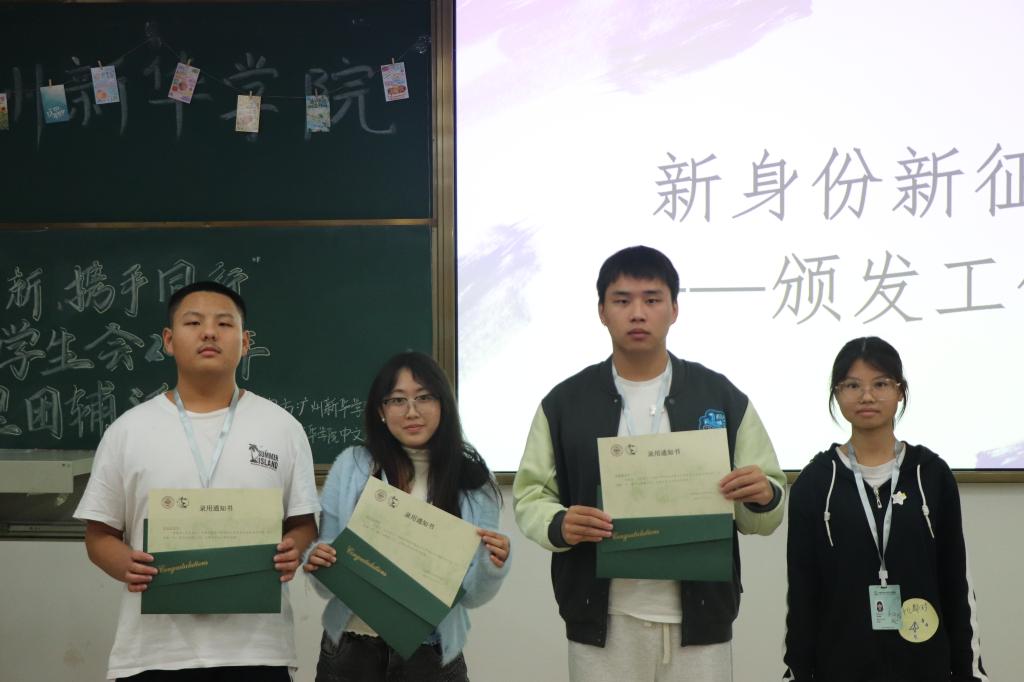 由各部门负责人为各部门工作人员颁发工作证。大会以工作证颁发仪式拉开帷幕。崭新的工作证在灯光下闪烁,学生会成员们按部门依次上台领取。这小小的证件,不仅是他们在学生会身份的标识,更意味着一份沉甸甸的责任与使命正式交付。无论是经验丰富的老干部,还是满怀憧憬的新成员,都在接过工作证的瞬间,感受到了为同学服务的荣耀与担当,也预示着他们将在未来的日子里,以全新的姿态投身于学生会的各项工作之中。