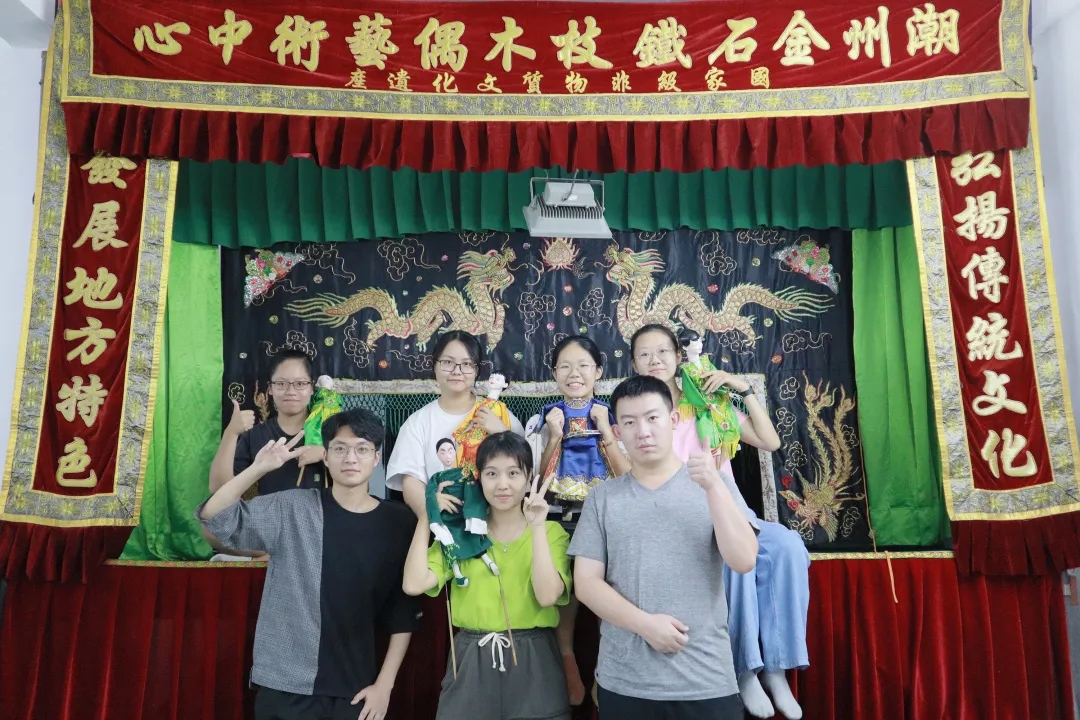 此番去潮州,接触到了国家级非遗———潮州铁枝木偶戏,实际操控木偶,并完成原创剧作排演。