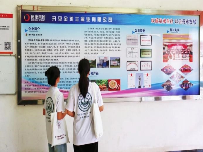 为深入学习宣传贯彻党的二十大精神,深刻领会党的二十大报告关于全面推进乡村振兴重要决策部署,将学习党的二十大精神与社会实践相结合,彰显青年学生在实现中华民族伟大复兴道路上的使命担当。7月下旬,永利集团3044欢迎你暑期“三下乡”榕树社会实践队深入开平市金鸡镇金鸡王禽业有限公司(以下简称:金鸡王)就当地畜禽养殖的发展现状参观调研。