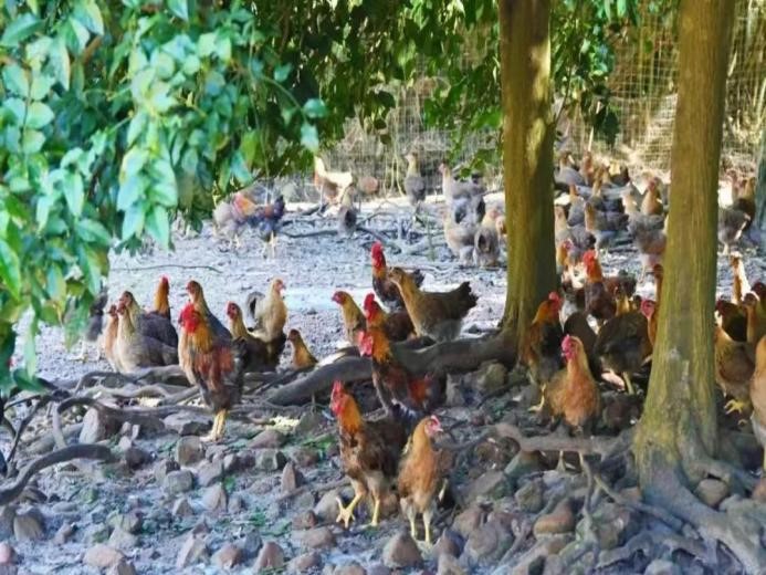 近年来,金鸡镇政府因地制宜,依托优渥的自然资源条件,以蓄力畜禽养殖引领现代化农业高质量发展,以开平市“南部特色养殖小镇”为定位,加大对禽畜养殖产业扶持力度,通过“公司+基地+科技+农户”的模式,推进肉鸡养殖业集约化、产业化发展,全镇12家养鸡企业带动600多户农户参与养殖。肉鸡存栏量约700 多万只,全镇每年上市肉鸡约1200 多万羽,肉鸡年产值近9亿元。其中 “三黄鸡”“黑凤鸡”“雪山飞凤”和“胡须鸡”等是金鸡镇肉鸡养殖的优质名片。2021年荣获广东省“一村一品、一镇一业”肉鸡专业镇。