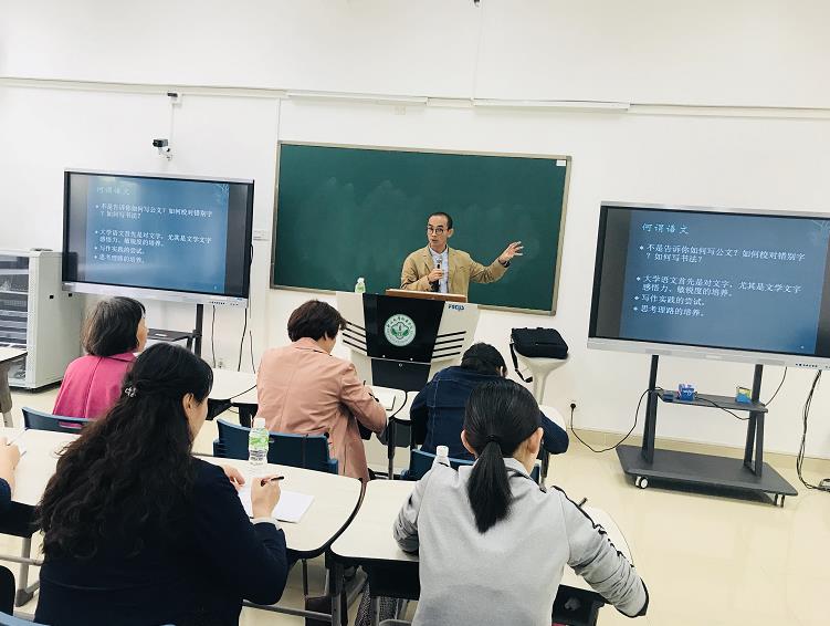 图1 朱崇科教授为大学语文教研室教师授课