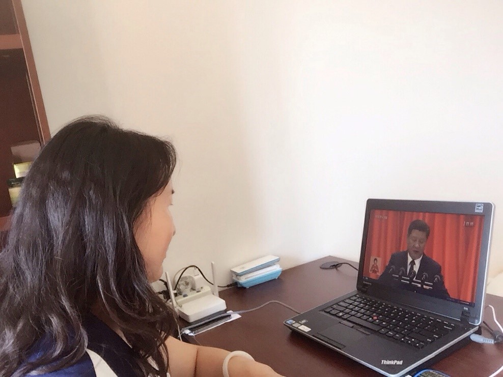 图二.我系专职教师王宝琴教授在家齐园教师公寓收看十九大开幕会报告