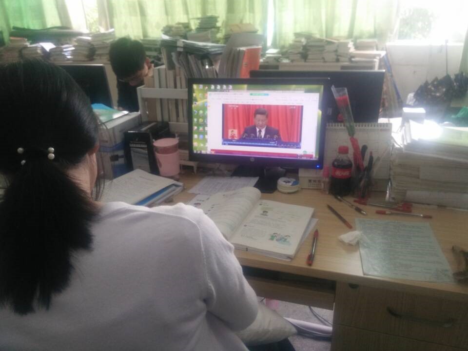图六.我系14级学生李海榕在实习单位惠州一中收看十九大开幕会报告